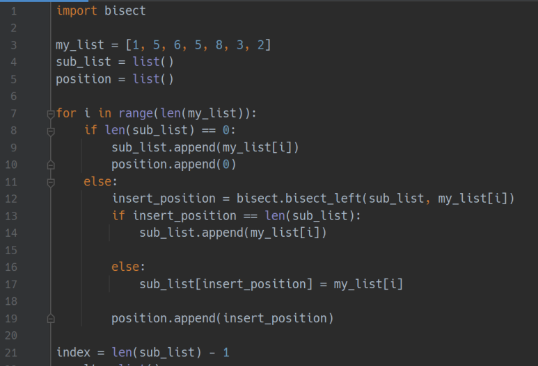 12 번째 줄에서 해당 숫자가 들어가야 할 위치를 bisect_left로 찾습니다.